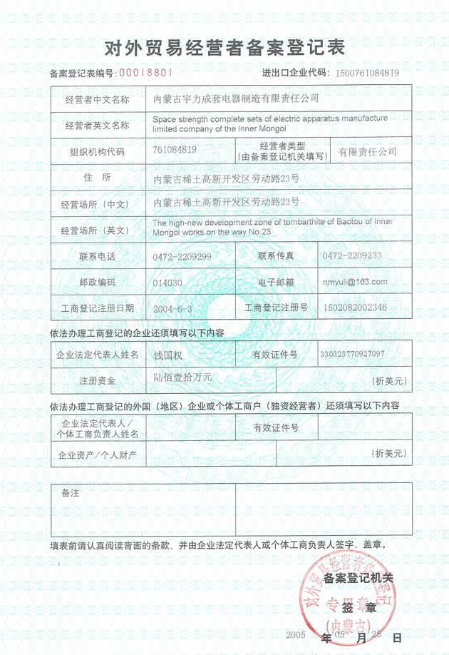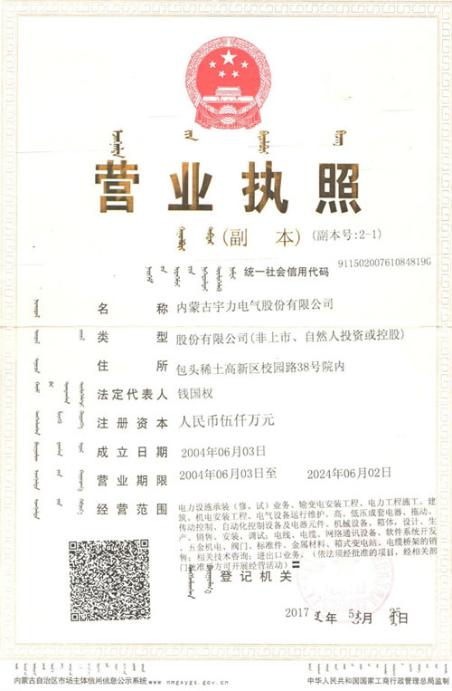 首頁(yè) > 關(guān)于宇力 > 企業(yè)資質(zhì)