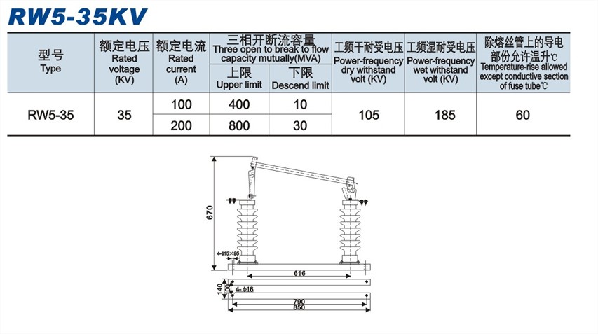 戶(hù)外高壓跌落式熔斷器適用于35kv及以下電壓頻率50Hz電力系統(tǒng)中,作輸電線(xiàn)路、電力變壓器過(guò)載和短路保護(hù),分合額定負(fù)荷電流只用,機(jī)械壽命≥2000次。