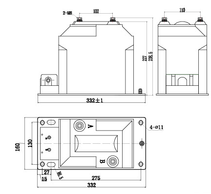 本型電壓互感器為環(huán)氧樹脂真空澆注全封閉單相戶內(nèi)結(jié)構(gòu), 主要適用于額定頻率為50Hz或60Hz , 額定電壓10kV及以下電力系統(tǒng)中作電能計量、 電壓測量用。