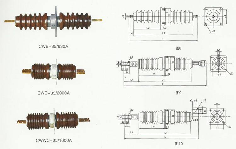 CWB-35KV/400-1500A高壓穿墻套管:(以下簡稱套管)適用于額定電壓(10~35)kV, 頻率(15~60)Hz的三相交流系統(tǒng)電站和變電所配電裝置上 ,供導電部分穿過隔板、墻壁或其它接地物,起絕緣支持和外部導線(母線)間固定連接之用。