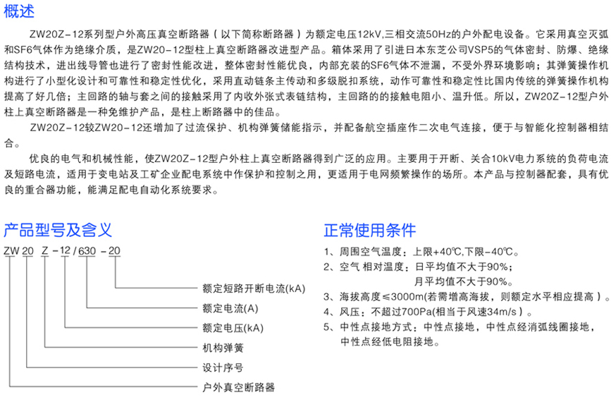 ZW20Z-12系列戶外高壓真空斷路器